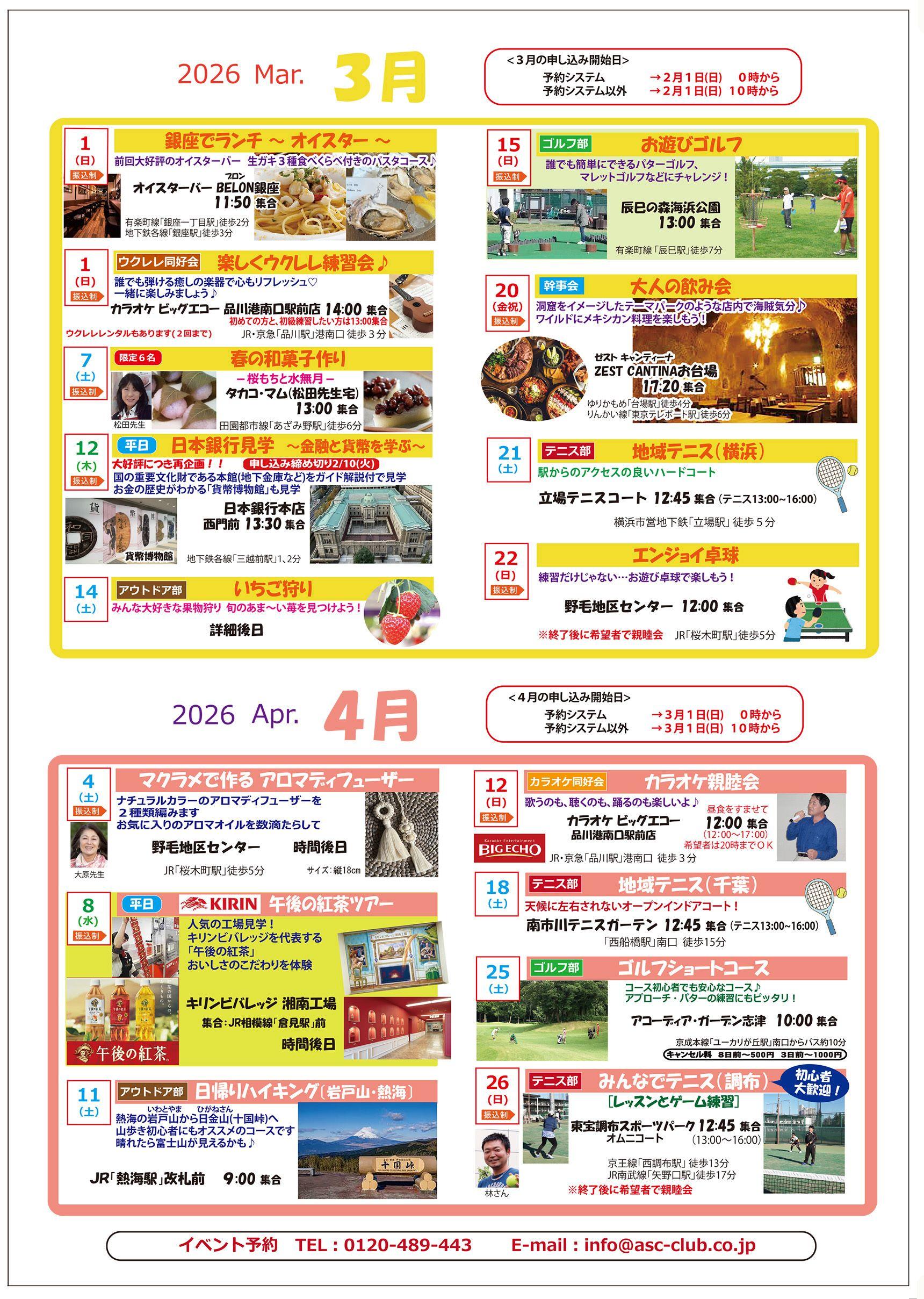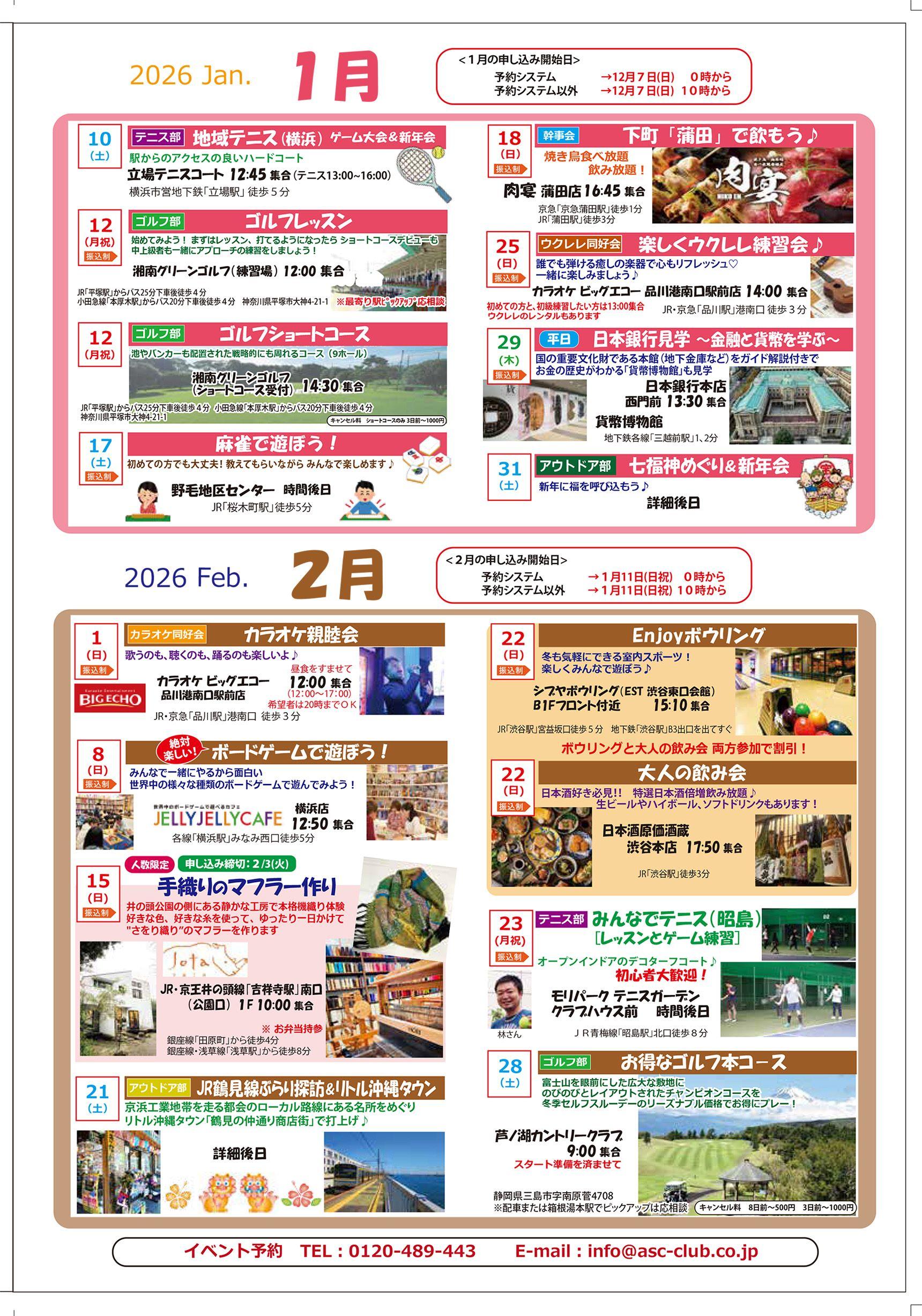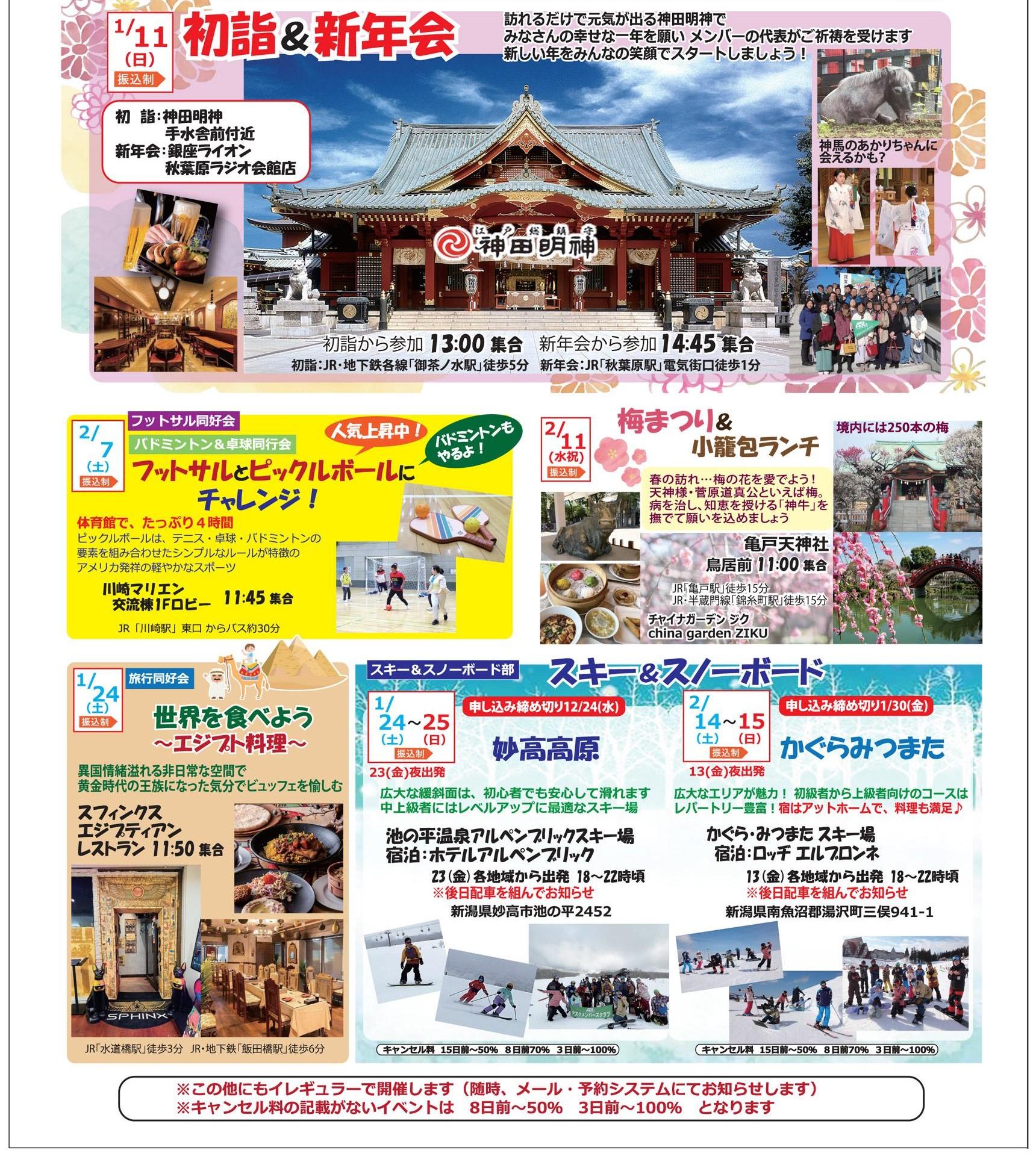 スポーツやアウトドア、習い事や食事会、旅行など、様々なイベントを通して たくさんの新しい体験、出会いと交流を提供しています。